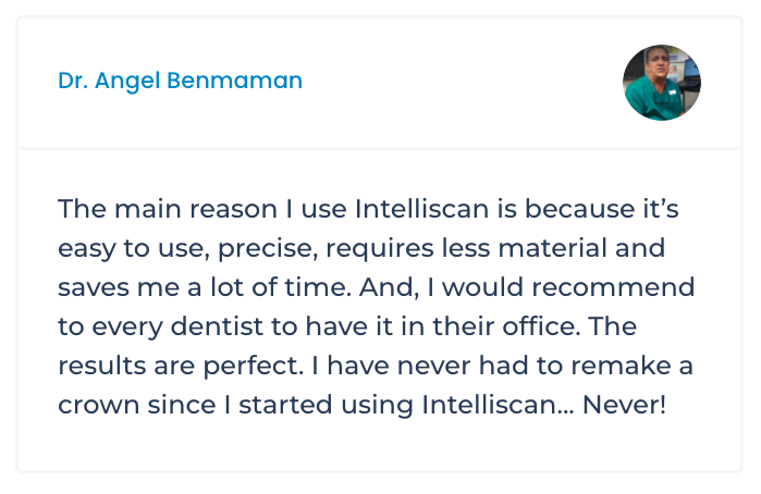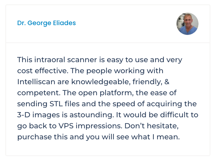 "The Intelliscan model X built-in Scans club ecosystem affords the dentist a low-cost high quality one-stop point of service for all of your laboratory needs.